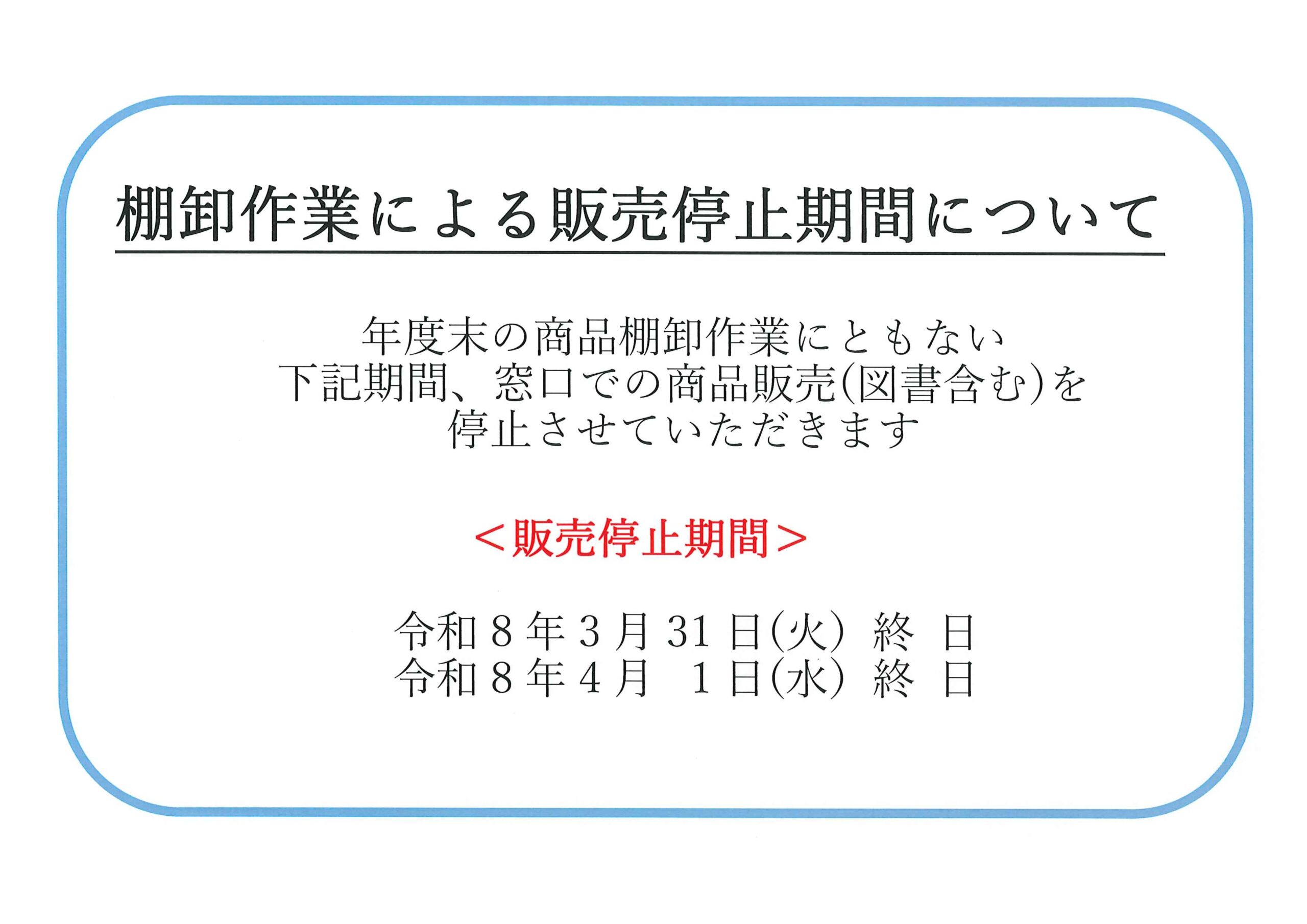 - お知らせ棚卸作業による販売停止期間について (お知らせ)